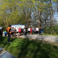Organisatorisch mit eingebunden waren neben den Schülern und Schülerinnen der ortzuständige Polizist Herr Schlichting und der wissenschaftliche Leiter des Denkorts ,,Bunker Valentin‘‘ Dr. Marcus Meyer. Letzterer hat unmittelbar vor dem Startsignal einleitende Worte über den Denkort und insbesondere über Harry Callan an die Teilnehmer gerichtet. Startpunkt war diesmal das Denkmal für Harry Callan, zu dessen Ehren vor dem Start ein Gedenkkranz niedergelegt worden ist.