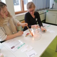 Am Freitag konnten wir alle MINT-Kolleginnen und -Kollegen bei uns an der Egge begrüßen. Als neue MINT-Schule haben wir das Schulgebäude vorgestellt und zudem auch die Überlegungen aus der Phase 0. Um aber die MINT-Schwerpunkte unserer Schule kennenzulernen, haben wir Workshops angeboten, die die Kleingruppen nacheinander durchlaufen konnten. Tim Trautmann hat diesbezüglich für Mathematik das Projekt „Ungewöhnliche Wohnbauten“ vorgestellt, indem es auch mal selbst ans Konstruieren ging. Für Informatik haben Rico Rosenow, Leon Weit und Kevin Tiessen (Q2) ihre Formel-1-Rennwagen vorgestellt und die Kolleginnen und Kollegen durften diese starten lassen. Für Naturwissenschaften hat Julia Holzer das BaSci Lab der Uni Bremen vorgestellt und drei kleine Praxis-Module (Ökosysteme, Leukämie, Grüne Baumwolle) angeboten. Im Rahmen von „Mein erstes Chemiepraktikum“ haben sechs SchülerInnen der 7d gezeigt, wie man ganz leicht ein Badesalz, ein Duschgel oder eine Tagescreme herstellen kann. Paul Mandel und Schüler aus der 9c haben Siebdruck vorgestellt. So konnten sich die Kolleginnen und Kollegen mit einer eigenen Rakel an ihren ersten Druck machen.