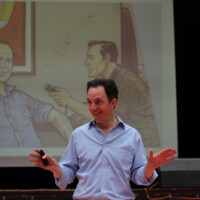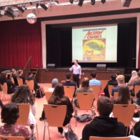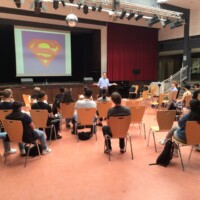 „Batmans größtes Geheimnis ist nicht Bruce Wayne.“ – Über eine Stunde erzählte US-Autor Marc Nobleman Schüler:innen der Oberstufe, wie er durch jahrelange, akribische Recherche dem wahren Erfinder von Batman, Bill Finger, zu der ihm zustehenden Anerkennung verhelfen konnte. Die Schüler:innen erlebten eine spannend und engagiert vorgetragene Präsentation auf Englisch und tauschten sich im Anschluss noch angeregt mit dem Autor aus.